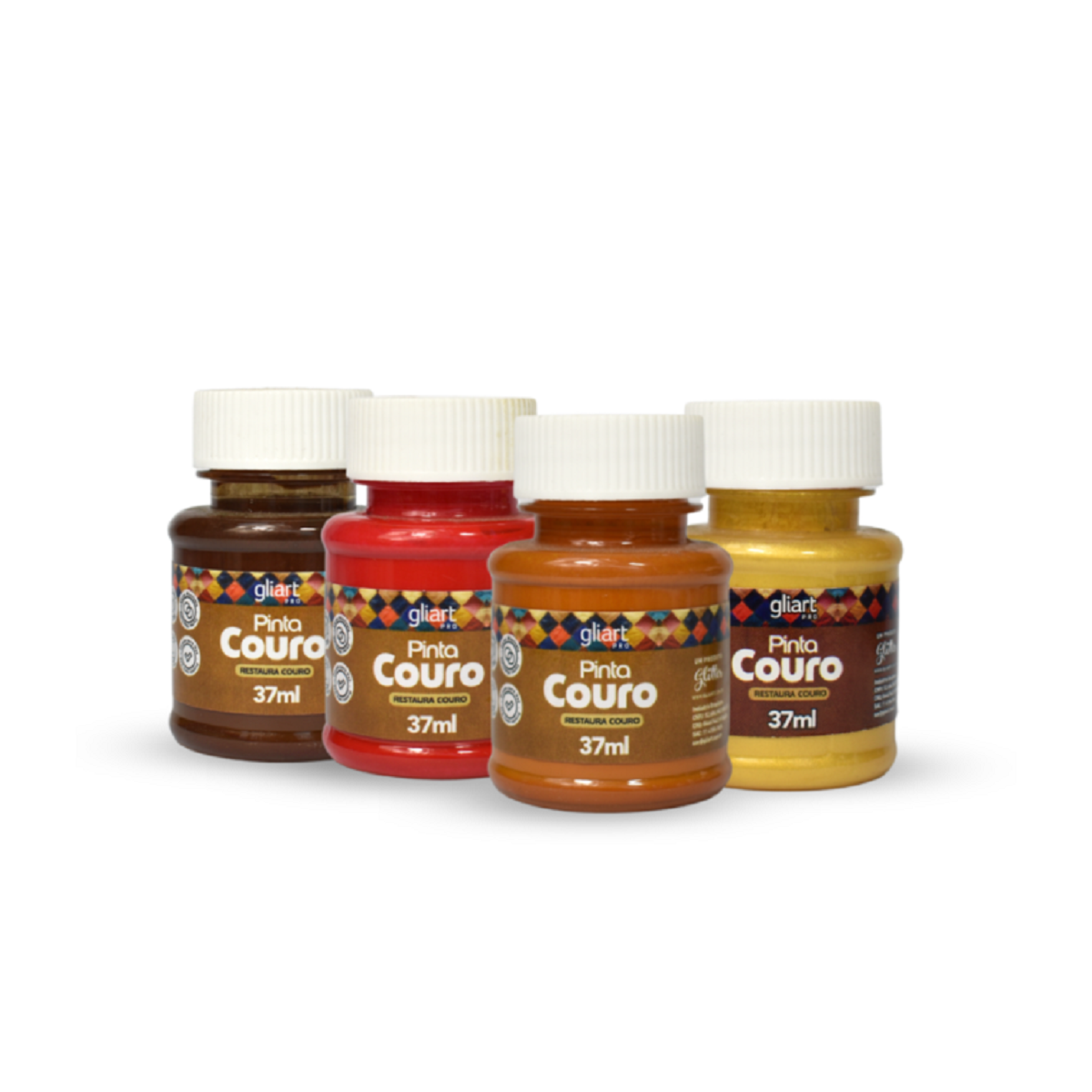 Para dar mais brilho às peças restauradas, recomendamos o acabamento com Verniz Couro. Cada embalagem contém uma unidade de Tinta Pinta Couro Gliart, garantindo um excelente rendimento para suas restaurações.