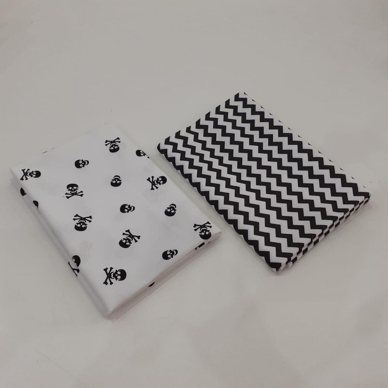 Kit com 02 tecidos tricoline 100% algodão, estampas variadas, cada um com recorte de 50 x 70 cm. Ideal para costura criativa, patchwork, artesanato, forros e aplicações diversas.