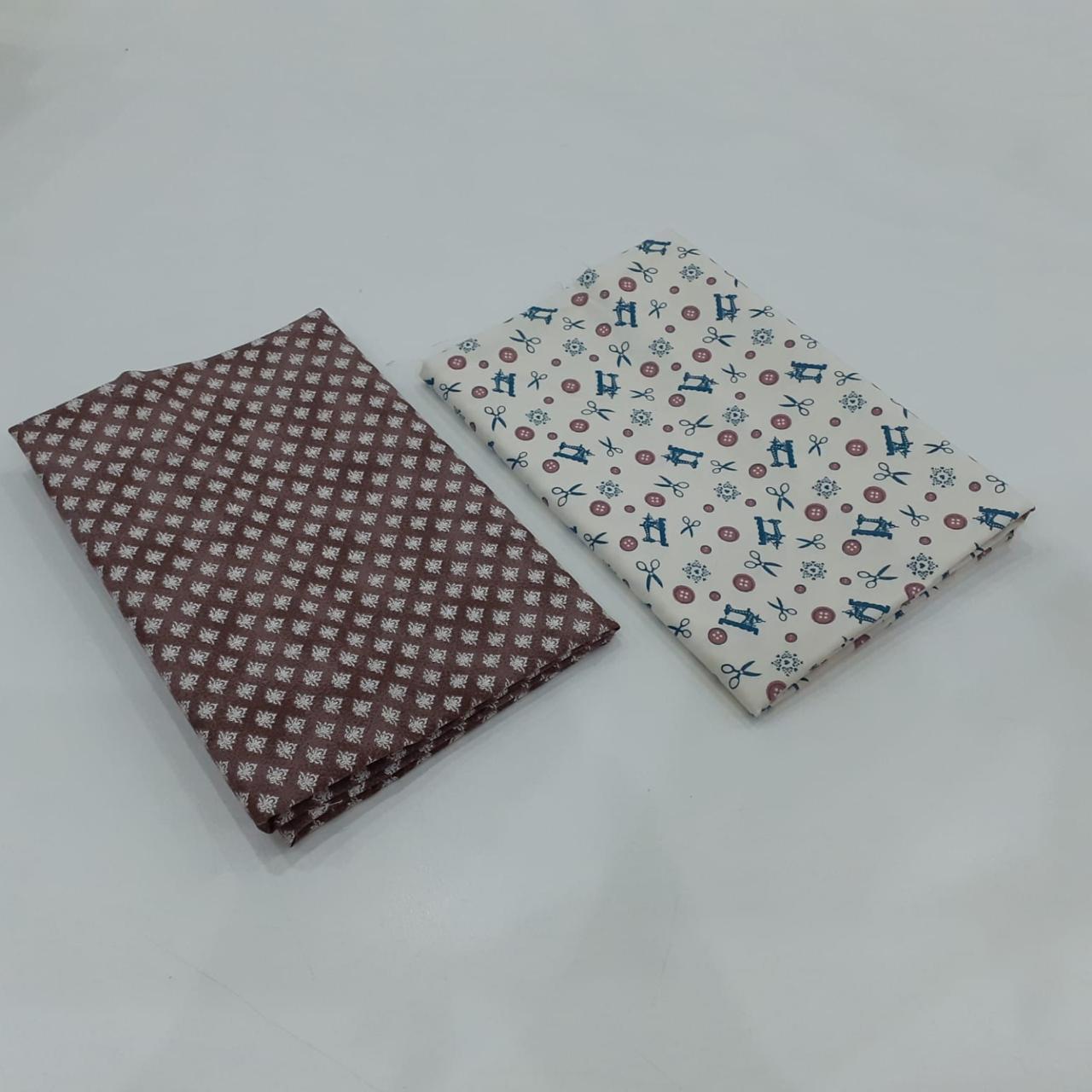 Kit com 02 tecidos tricoline 100% algodão, estampas variadas, cada um com recorte de 50 x 70 cm. Ideal para costura criativa, patchwork, artesanato, forros e aplicações diversas.