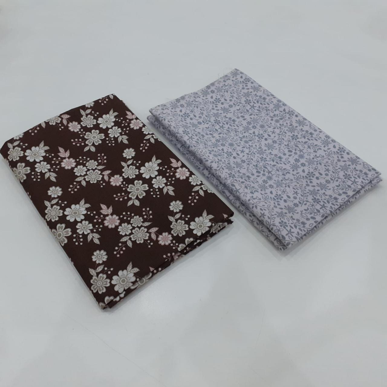 Kit com 02 tecidos tricoline 100% algodão, estampas variadas, cada um com recorte de 50 x 70 cm. Ideal para costura criativa, patchwork, artesanato, forros e aplicações diversas.