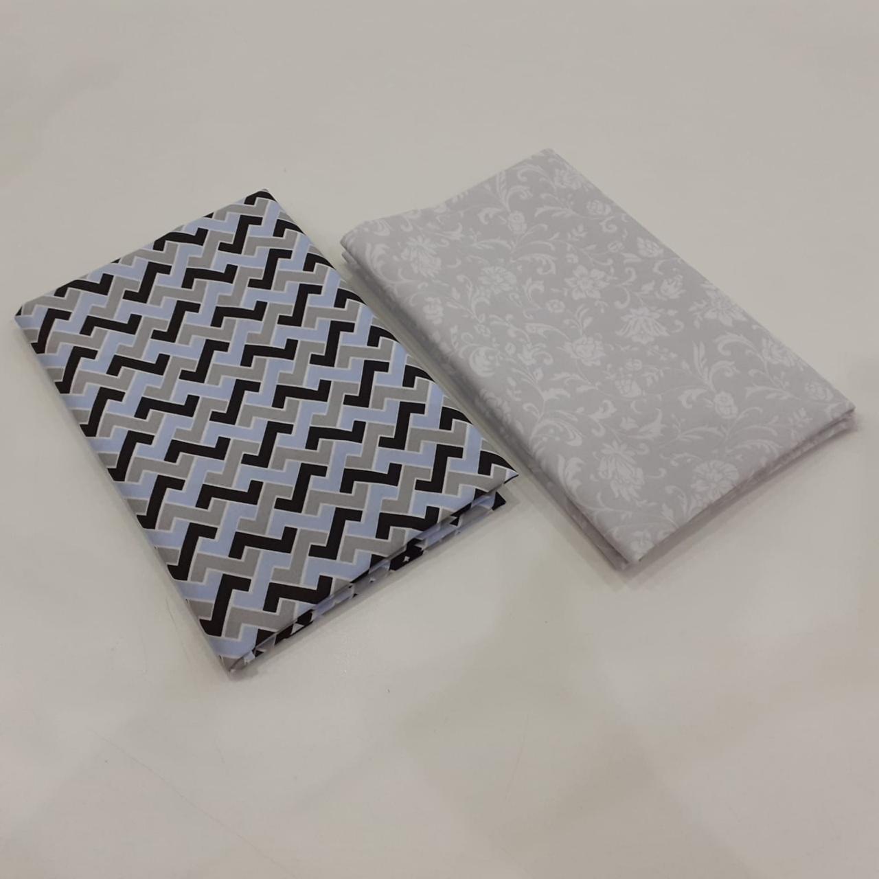 Kit com 02 tecidos tricoline 100% algodão, estampas variadas, cada um com recorte de 50 x 70 cm. Ideal para costura criativa, patchwork, artesanato, forros e aplicações diversas.