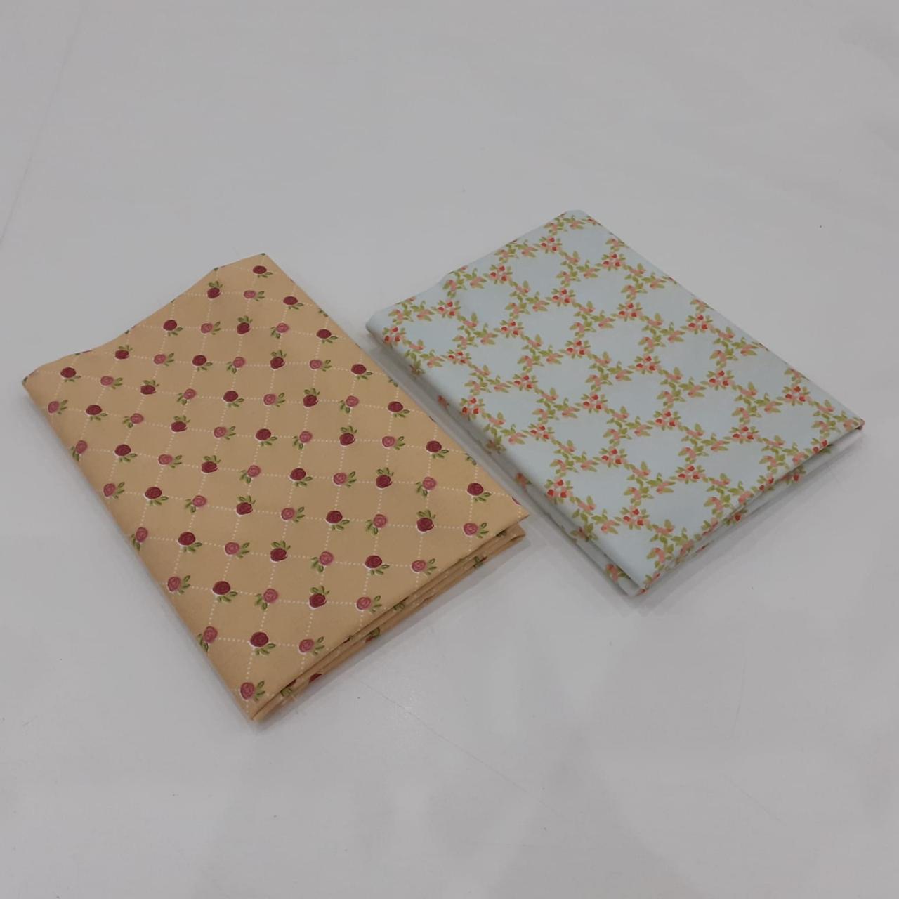 Kit com 02 tecidos tricoline 100% algodão, estampas variadas, cada um com recorte de 50 x 70 cm. Ideal para costura criativa, patchwork, artesanato, forros e aplicações diversas.