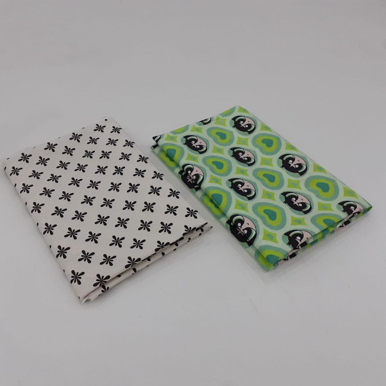 Kit com 02 tecidos tricoline 100% algodão, estampas variadas, cada um com recorte de 50 x 70 cm. Ideal para costura criativa, patchwork, artesanato, forros e aplicações diversas.