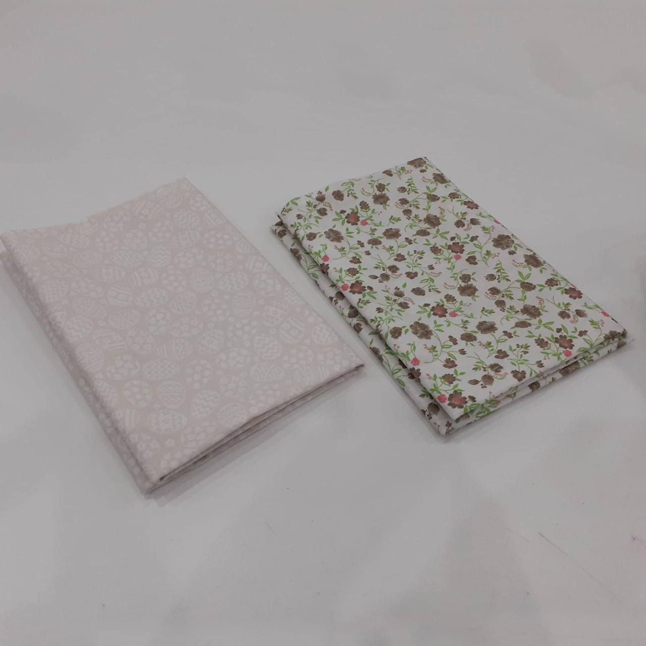 Kit com 02 tecidos tricoline 100% algodão, estampas variadas, cada um com recorte de 50 x 70 cm. Ideal para costura criativa, patchwork, artesanato, forros e aplicações diversas.