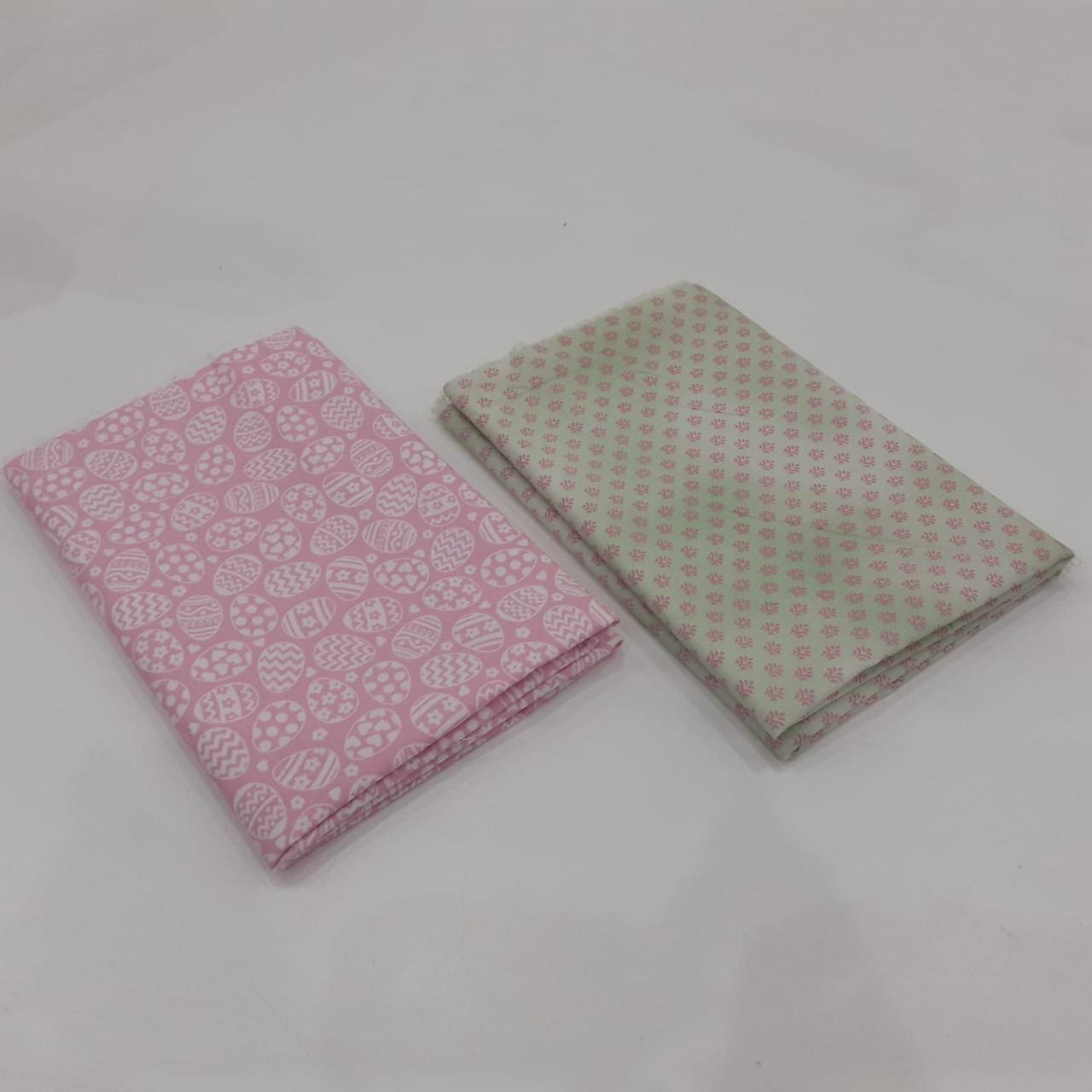 Kit com 02 tecidos tricoline 100% algodão, estampas variadas, cada um com recorte de 50 x 70 cm. Ideal para costura criativa, patchwork, artesanato, forros e aplicações diversas.