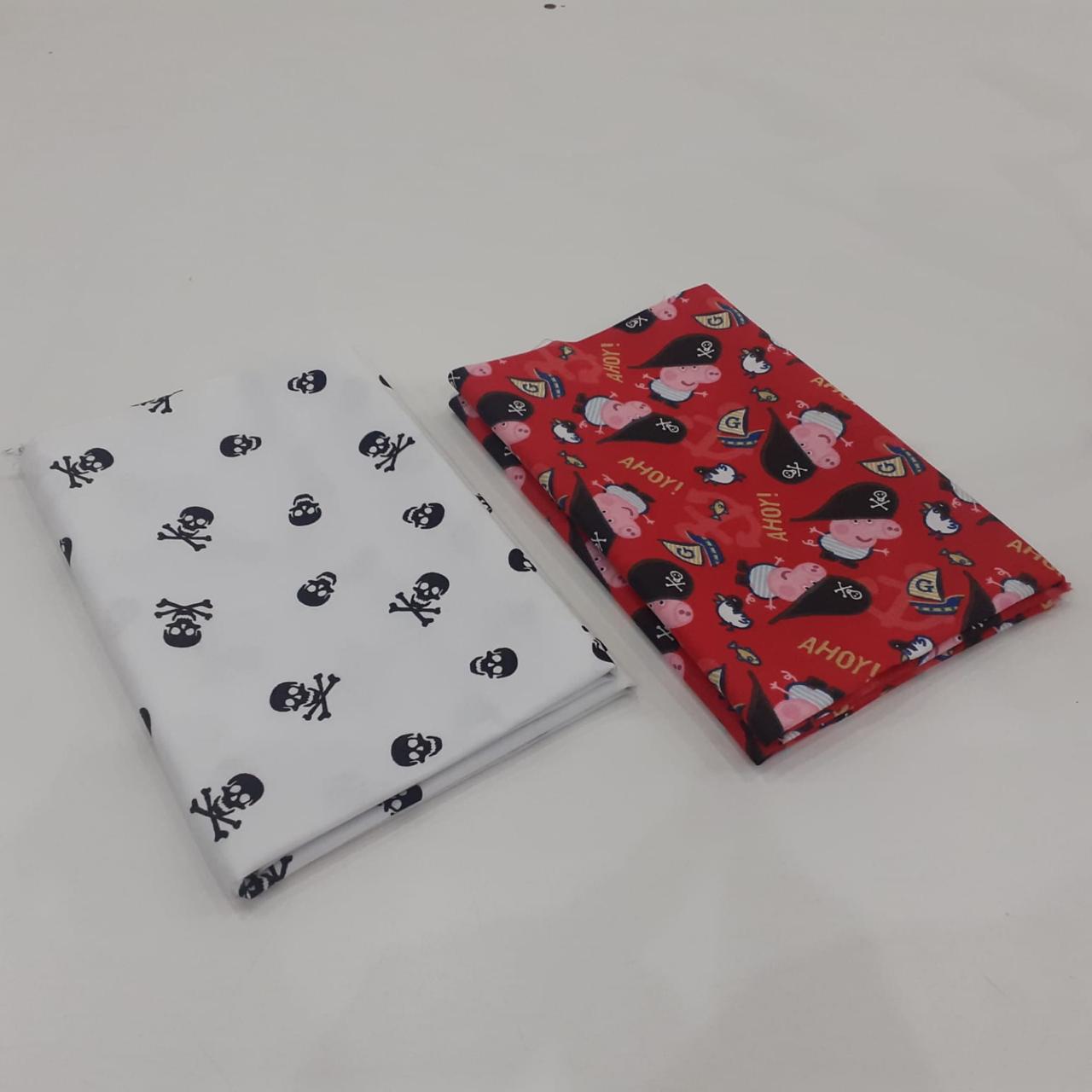 Kit com 02 tecidos tricoline 100% algodão, estampas variadas, cada um com recorte de 50 x 70 cm. Ideal para costura criativa, patchwork, artesanato, forros e aplicações diversas.