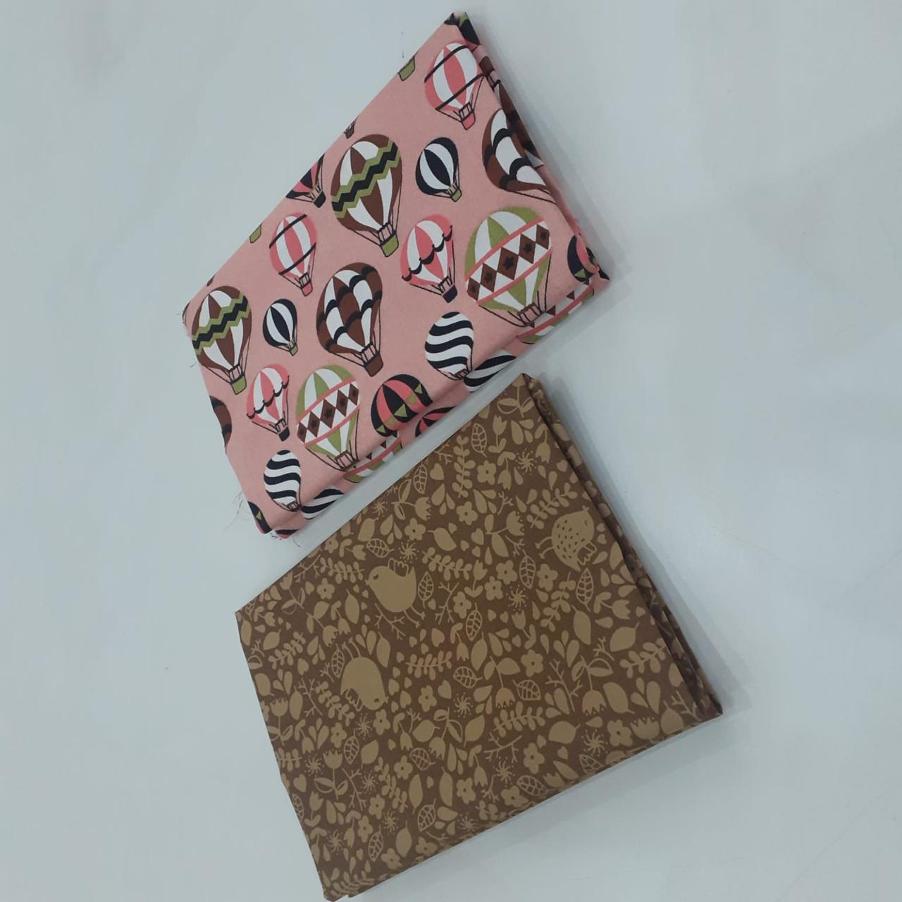 Kit com 02 tecidos tricoline 100% algodão, estampas variadas, cada um com recorte de 50 x 70 cm. Ideal para costura criativa, patchwork, artesanato, forros e aplicações diversas.