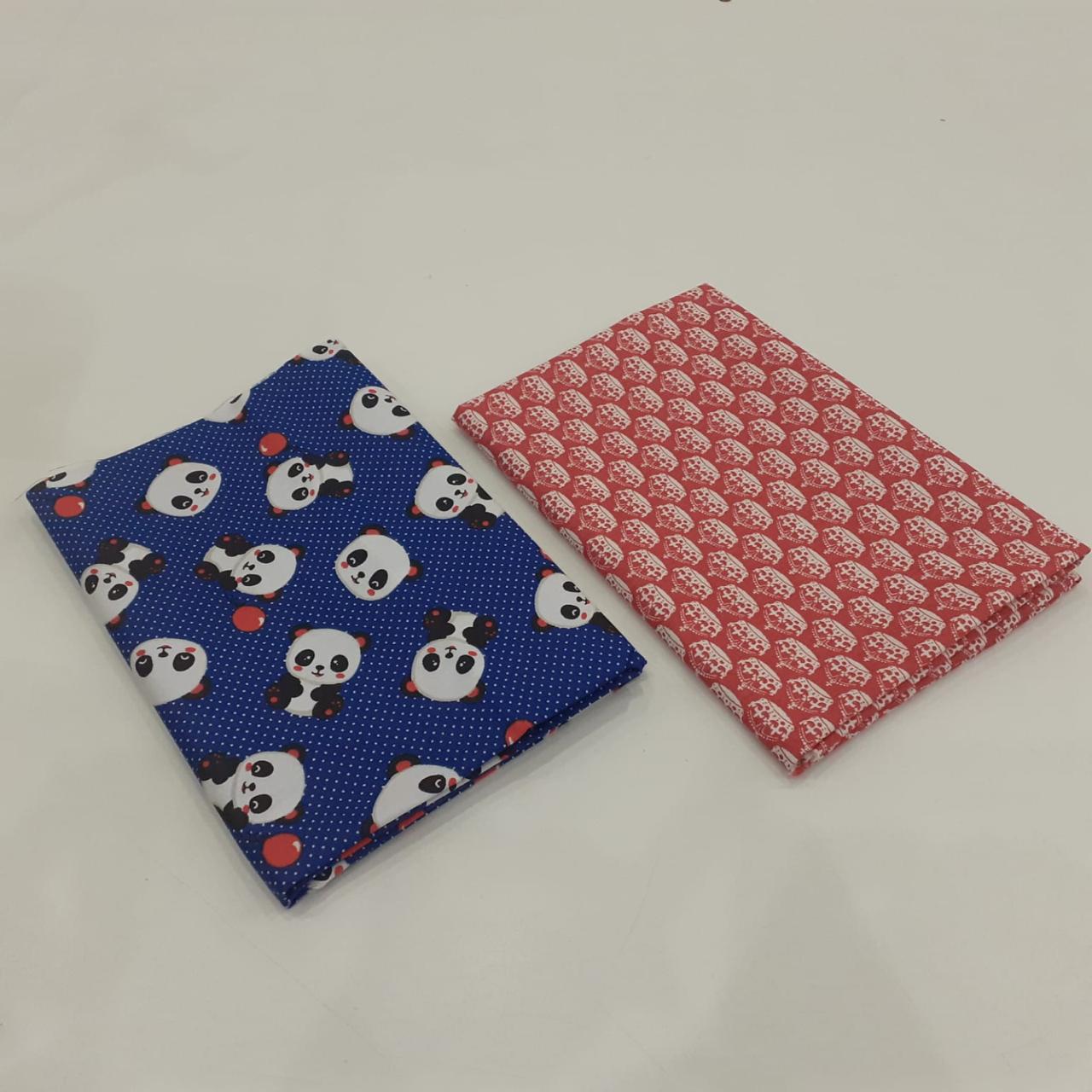 Kit com 02 tecidos tricoline 100% algodão, estampas variadas, cada um com recorte de 50 x 70 cm. Ideal para costura criativa, patchwork, artesanato, forros e aplicações diversas.