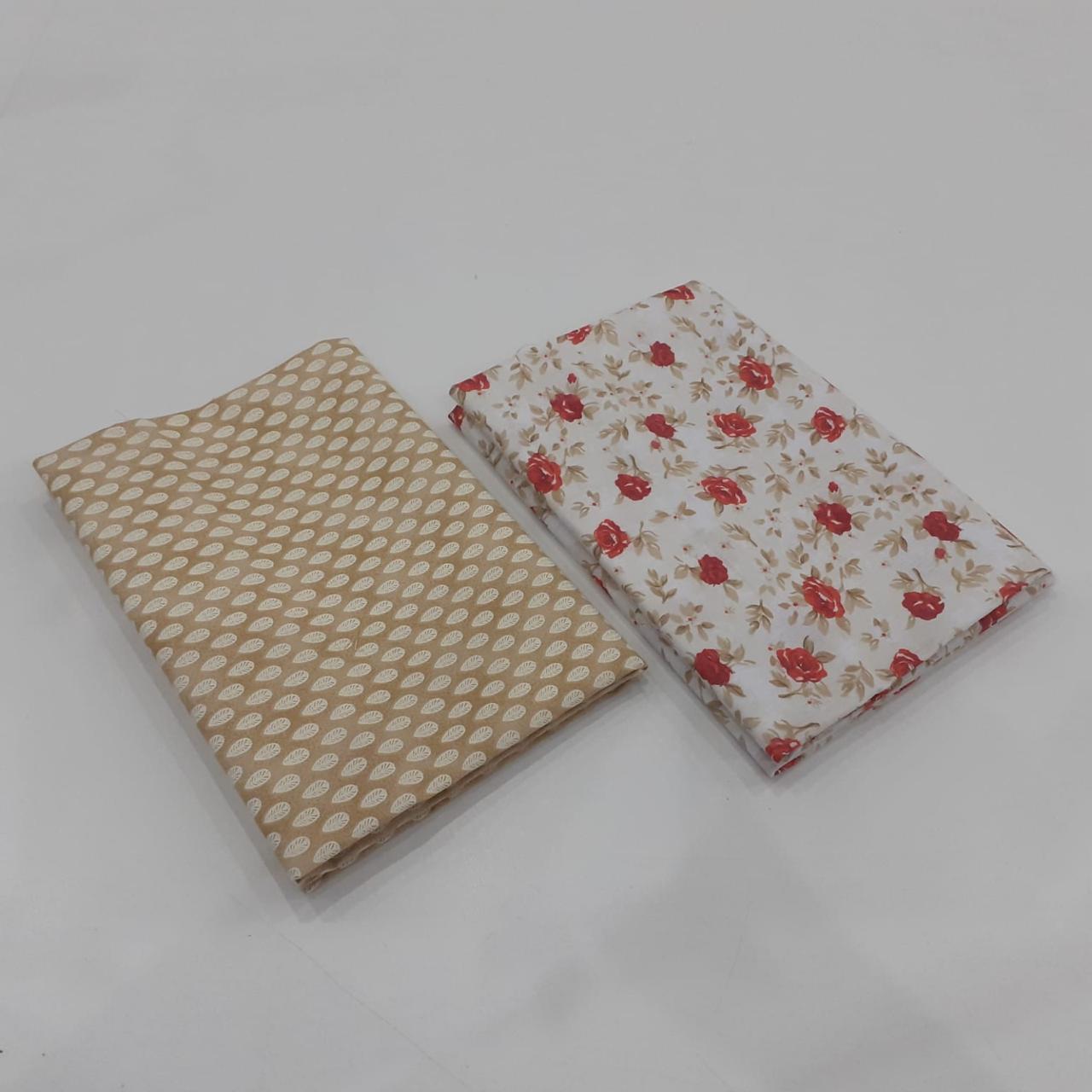 Kit com 02 tecidos tricoline 100% algodão, estampas variadas, cada um com recorte de 50 x 70 cm. Ideal para costura criativa, patchwork, artesanato, forros e aplicações diversas.