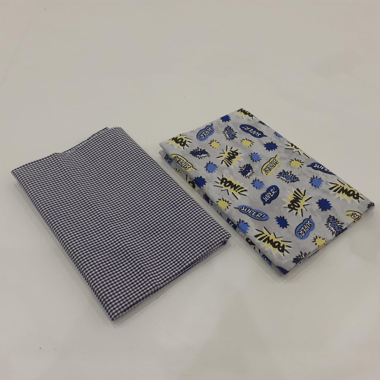 Kit com 02 tecidos tricoline 100% algodão, estampas variadas, cada um com recorte de 50 x 70 cm. Ideal para costura criativa, patchwork, artesanato, forros e aplicações diversas.