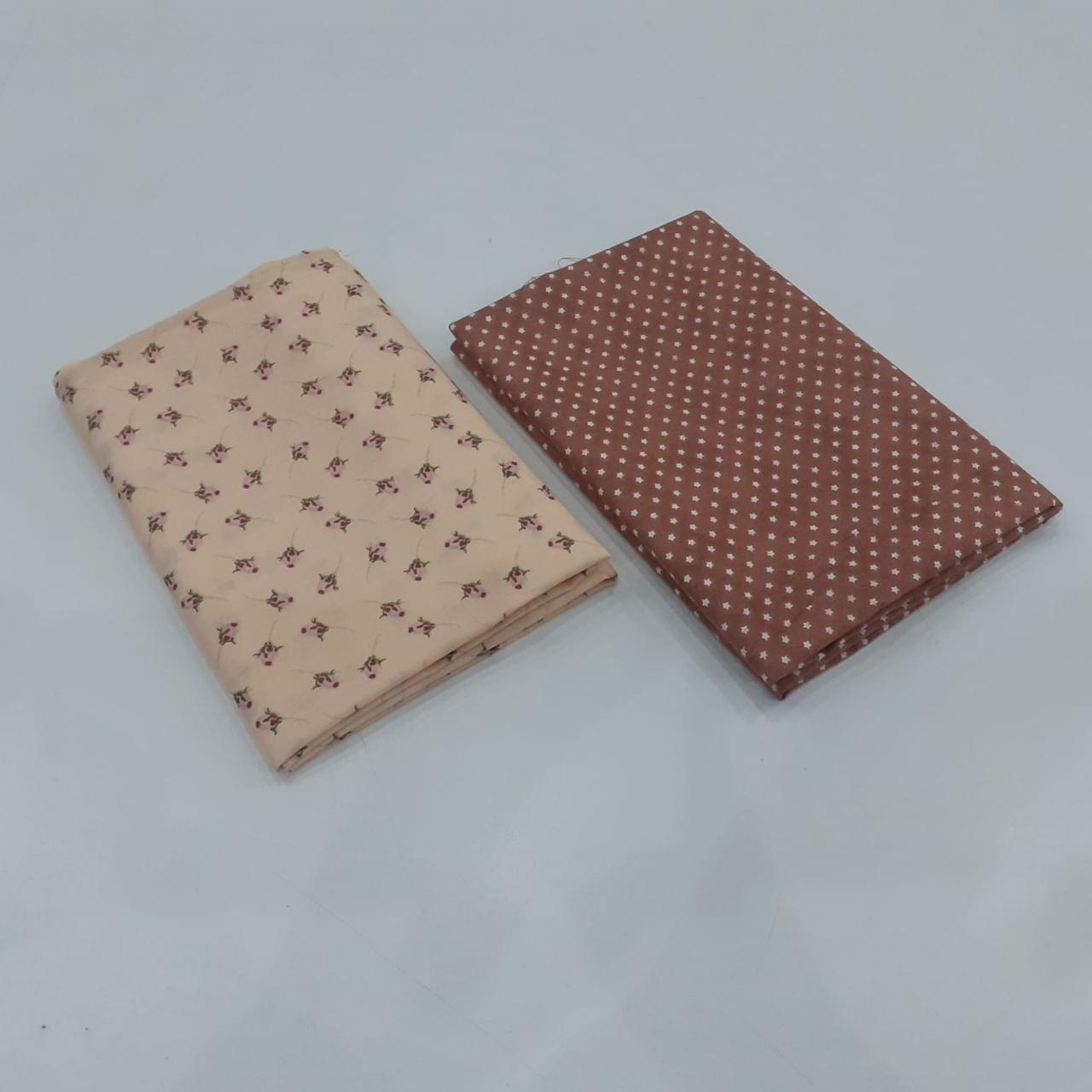 Kit com 02 tecidos tricoline 100% algodão, estampas variadas, cada um com recorte de 50 x 70 cm. Ideal para costura criativa, patchwork, artesanato, forros e aplicações diversas.