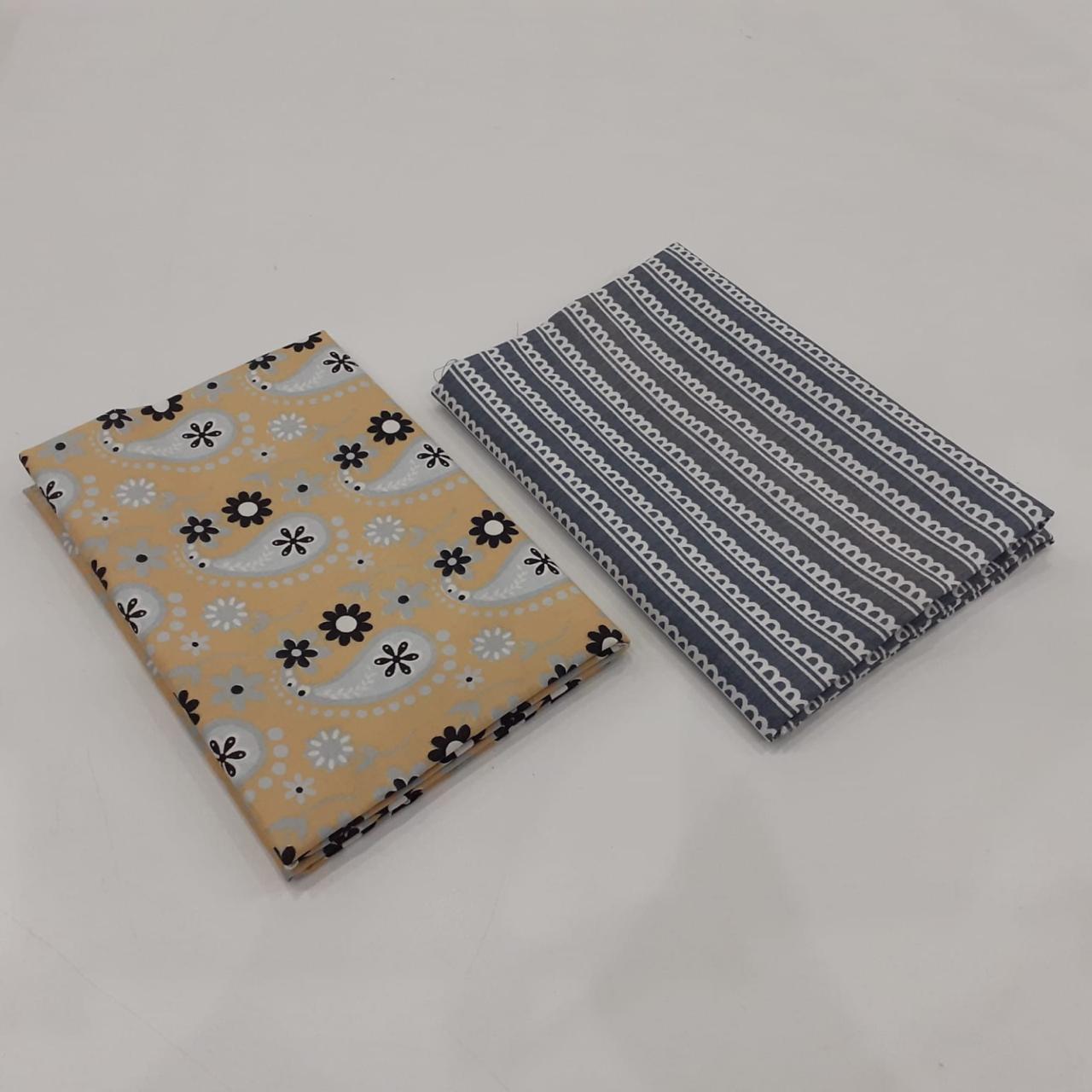 Kit com 02 tecidos tricoline 100% algodão, estampas variadas, cada um com recorte de 50 x 70 cm. Ideal para costura criativa, patchwork, artesanato, forros e aplicações diversas.