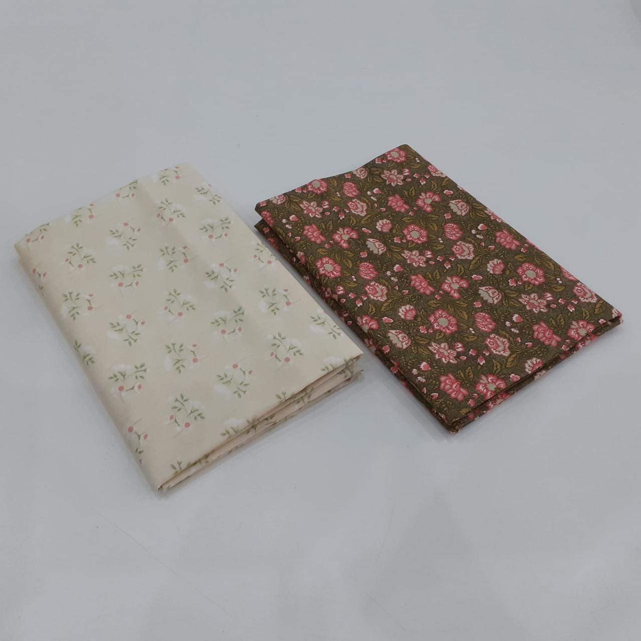 Kit com 02 tecidos tricoline 100% algodão, estampas variadas, cada um com recorte de 50 x 70 cm. Ideal para costura criativa, patchwork, artesanato, forros e aplicações diversas.