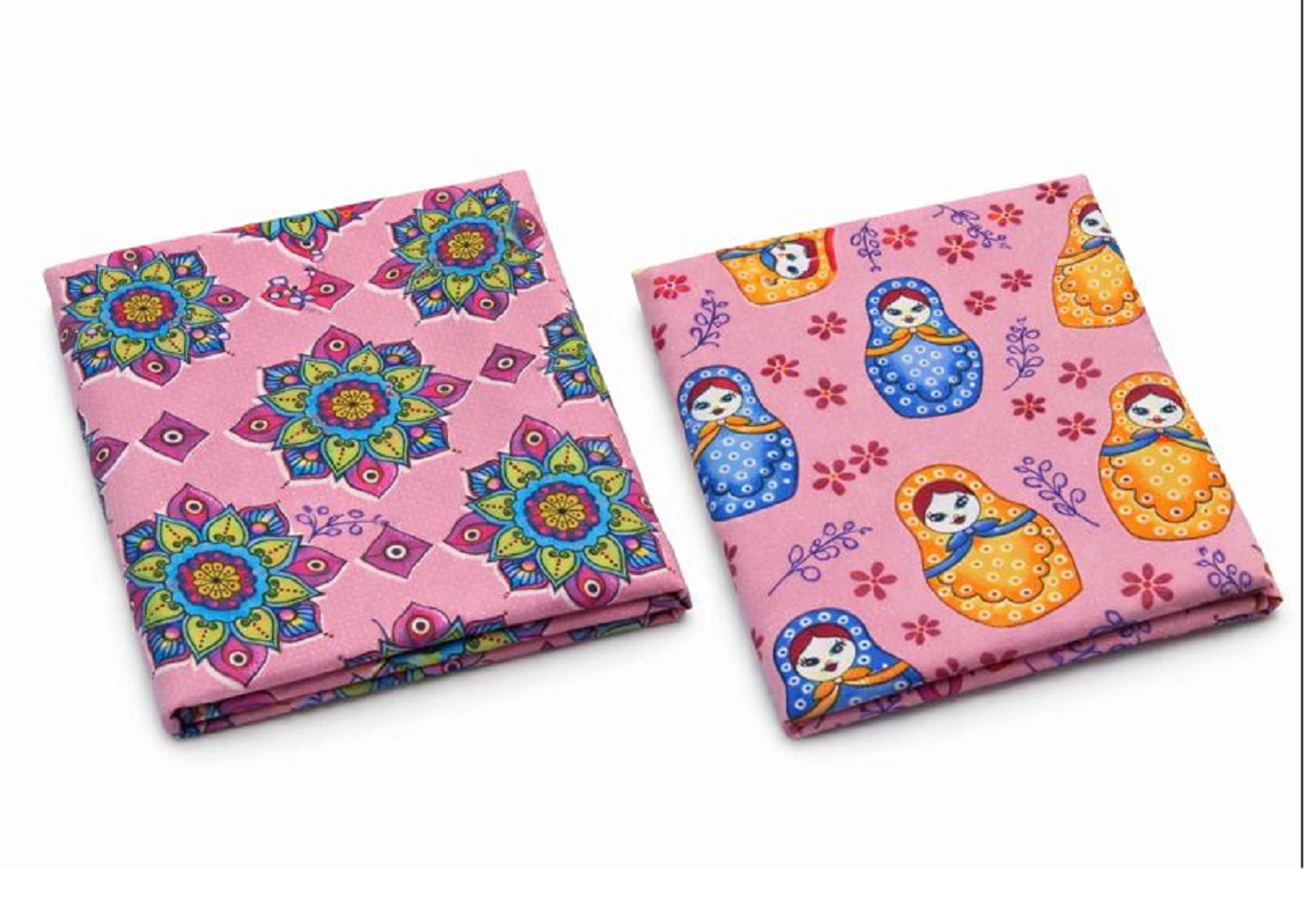 Kit com 02 tecidos tricoline 100% algodão, estampas variadas, cada um com recorte de 50 x 70 cm. Ideal para costura criativa, patchwork, artesanato, forros e aplicações diversas.